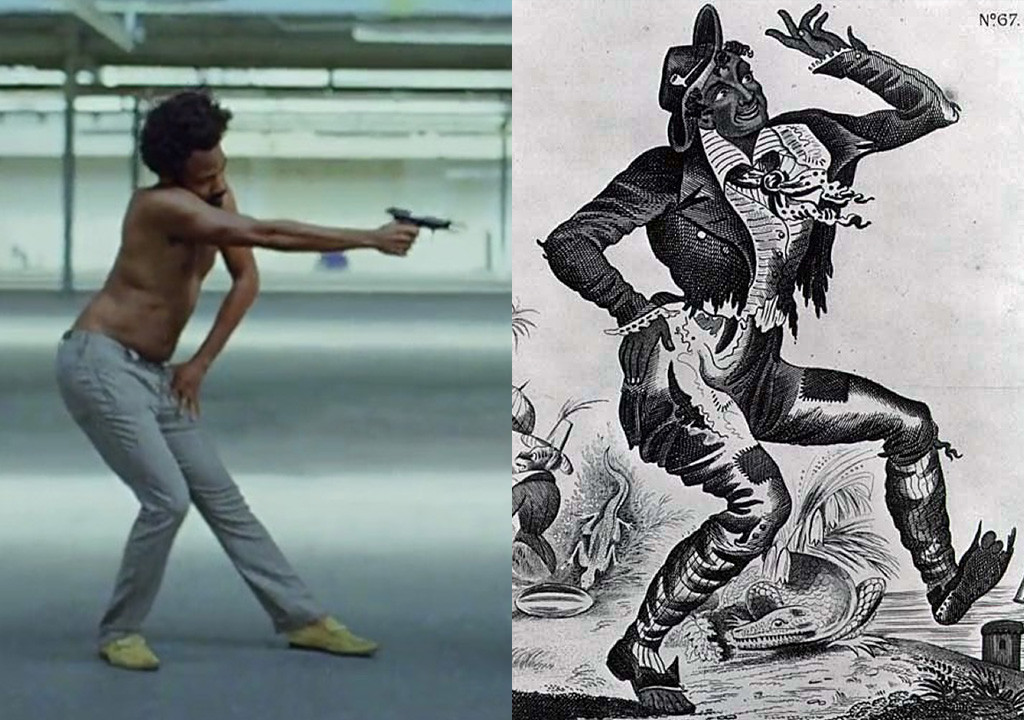 ¿La mueca exagerada con guiño incluido previa al primer tiroteo del video? Por supuesto, es otra referencia a otro clásico referente racista yanqui; al igual que la vestimenta de Gambino, que está compuesta por unos pantalones grises y un calzado con un sospechoso parecido a los que utilizaba el Ejército de los Estados Confederados —partidarios de mantener la esclavitud— que luchó durante la Guerra Civil Americana.